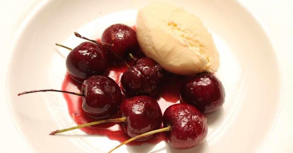 アメリカンチェリーのカラメリゼ バニラアイス添え 樋口直哉 Travelingfoodlab Note