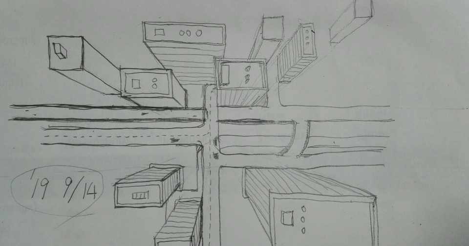 一点透視図法 ウラ紙のらくがき