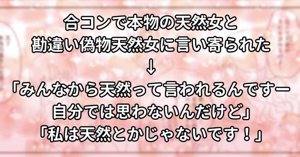 合コンで本物の天然女と勘違い 偽物天然女に言い寄られた みんなから天然って言われるんですー自分では思わないんだけど 私は天然とかじゃないです 水瀬はるき Note