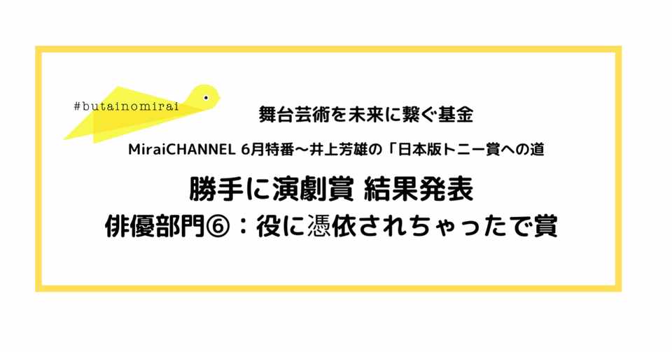 俳優部門 役に憑依されちゃったで賞 舞台芸術を未来に繋ぐ基金 みらい基金 Note